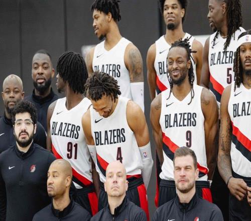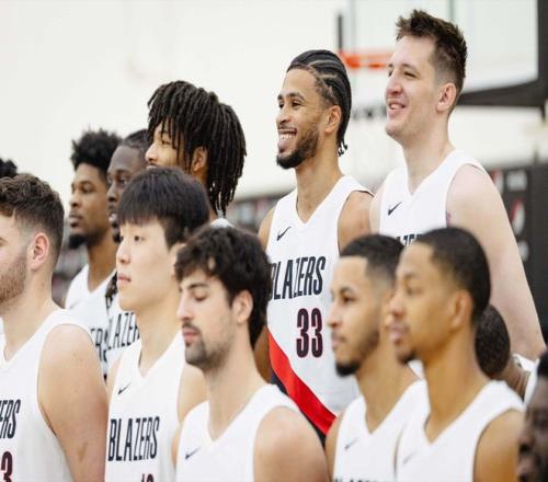 開(kāi)拓者拍全家福!克林根C位楊瀚森在他身旁昔日老大利拉德站角落
