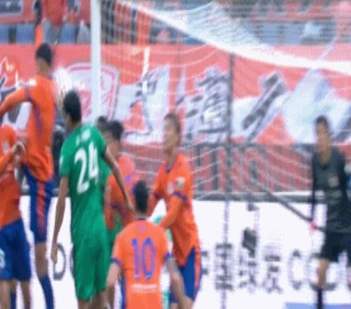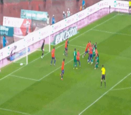 第13分鐘,邦本宜裕主罰右側角球,球擊中孔特右手,主裁判并未第一時間做出判罰,這讓遼寧鐵人球員非常不滿。