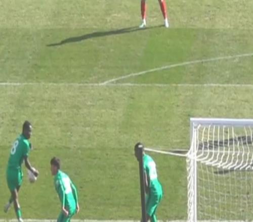 回看慢鏡頭之后,主裁判判罰點球,姆本扎主罰點球破門,遼寧鐵人取得領先。