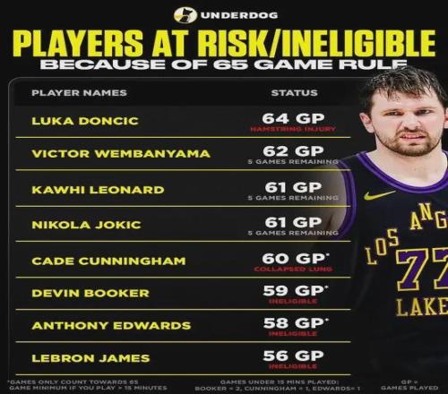 本賽季東契奇已打了64場常規(guī)賽,本來只差一場就能達(dá)到各大獎(jiǎng)項(xiàng)評(píng)選標(biāo)準(zhǔn),場均出戰(zhàn)35.7分鐘狂轟33.5分(聯(lián)盟第一)外加7.7板8.3助1.6斷,三項(xiàng)命中率47.6%、36.6%和78%,使用率36.8%同樣高居聯(lián)盟榜首,場均上陣時(shí)間聯(lián)盟第四。