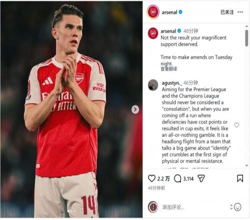 阿森納社媒向球迷道歉:你們的支持未換來應(yīng)得的結(jié)果,我們會彌補(bǔ)