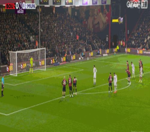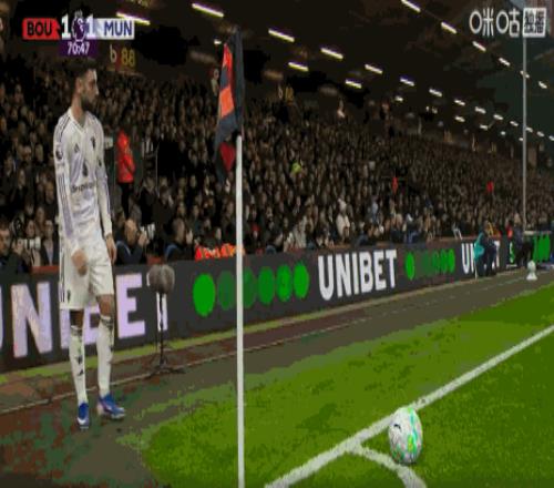 第31輪客戰(zhàn)伯恩茅斯,B費點球破門,并且罰出角球制造烏龍。