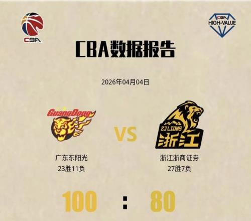 終場(chǎng)哨響,比分定格100:80。4月4日晚,CBA常規(guī)賽第34輪焦點(diǎn)戰(zhàn),廣東東陽(yáng)光坐鎮(zhèn)主場(chǎng)迎戰(zhàn)浙江浙商證券男籃。在核心內(nèi)線薩林杰首節(jié)意外傷退、輪換捉襟見(jiàn)肘的困境下,廣東隊(duì)用極致團(tuán)隊(duì)配合與拼勁頂住反撲,最終以20分優(yōu)勢(shì)拿下硬仗,斬獲三連勝!