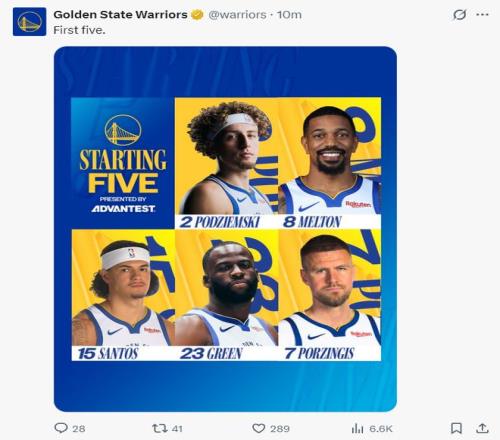 勇士:桑托斯15分4籃板,追夢(mèng)6分7籃板11助攻,波爾津吉斯9分6犯規(guī),波杰18分,庫(kù)里29分5三分,小佩頓14分。