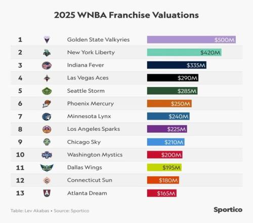 根據(jù)《Sportico》此前發(fā)布的榜單,WNBA在2025年的球隊(duì)平均估值已經(jīng)達(dá)到2.69億美元,相比2024年有180%的漲幅。太陽隊(duì)最終以3億美元成交,算是賣在了一個(gè)相當(dāng)理想的位置。