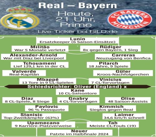 圖片報預測皇馬vs拜仁首發(fā):凱恩PK姆巴佩,阿諾德對位迪亞斯