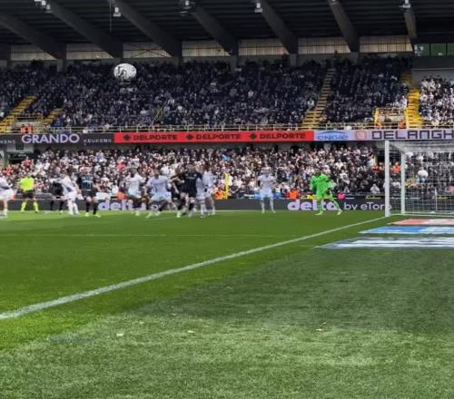 第29分鐘,布魯日開(kāi)出角球,三斯高高躍起,頭槌破門(mén)。