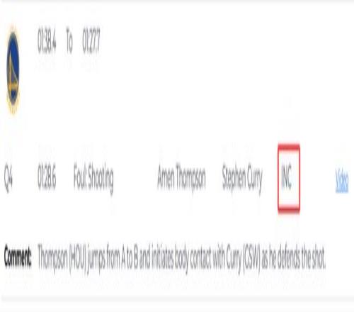 第一次漏判發(fā)生在距離比賽結(jié)束還剩1分28秒時,報告指出,火箭球員阿門-湯普森在防守庫里投籃時,從A點移動到B點并主動與庫里發(fā)生身體接觸。這是一次漏吹的防守犯規(guī),庫里當(dāng)時上籃命中,本該吹罰2+1,裁判沒有響哨,庫里少了一次罰球機會。這次漏判是勇士吃虧,火箭獲利。