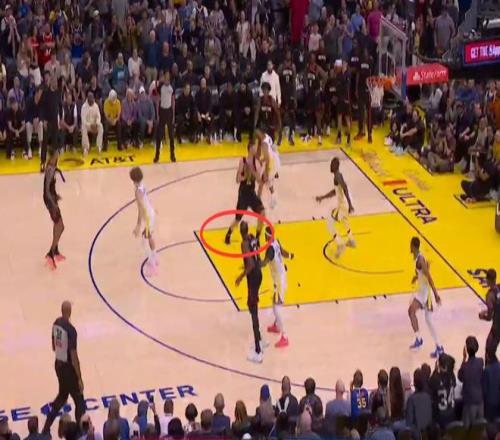 第三次漏判發(fā)生在距離比賽結(jié)束還有46秒時,勇士的格林在沒有積極防守對方球員的前提下,在己方禁區(qū)停留時間超過三秒,這是一次漏吹的防守三秒違例。這次漏判是火箭吃虧,勇士獲利。