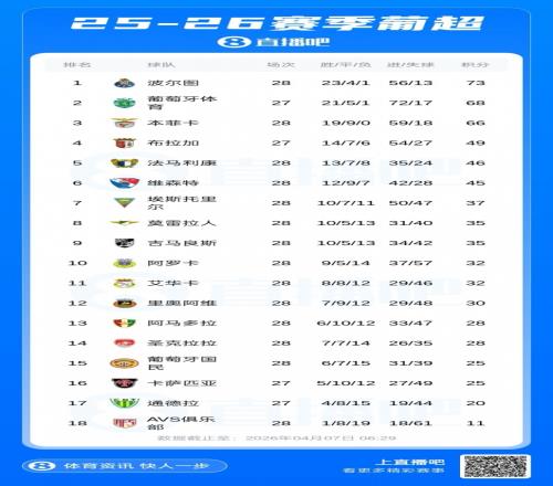 葡超積分榜