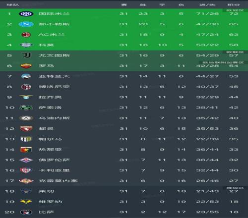 隨著AC米蘭01,尤文20,意甲最新排名出爐!國米7分領跑