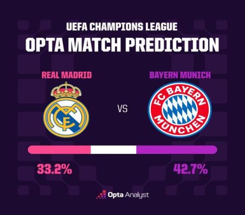 關(guān)于誰勝誰負(fù)的推斷,讓我們先來看看“賽博算卦”。據(jù)Opta的超級計算機模擬推演,今晚似乎會是一個“客隊之夜”——均是作客的一方更被看好能夠拿下比賽的勝利。其中拜仁的獲勝概率達到42.7%,略高于皇馬的33.2%,而阿森納算出來的獲勝概率更是高達53.1%,比對手里斯本競技的22.5%高出一倍有余。