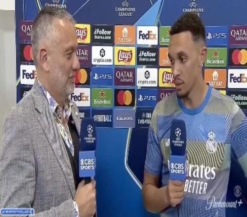 歐冠1/4決賽首回合,皇馬1-2輸給拜仁,皇馬后衛(wèi)阿諾德賽后接受了CBS體育的采訪。