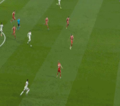第46分鐘,下半場(chǎng)開場(chǎng)不到30秒,凱恩遠(yuǎn)射破門,拜仁2-0皇馬