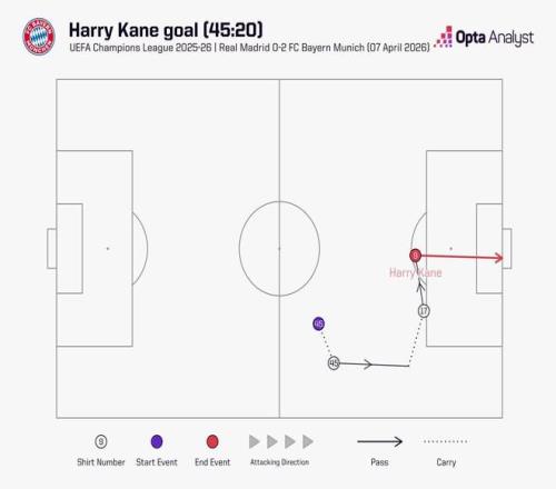 歐冠1/4決賽首回合,拜仁慕尼黑客場(chǎng)對(duì)陣皇家馬德里,下半場(chǎng)凱恩開場(chǎng)20秒破門,打入有統(tǒng)計(jì)以來(lái)歐冠下半場(chǎng)第二快進(jìn)球。