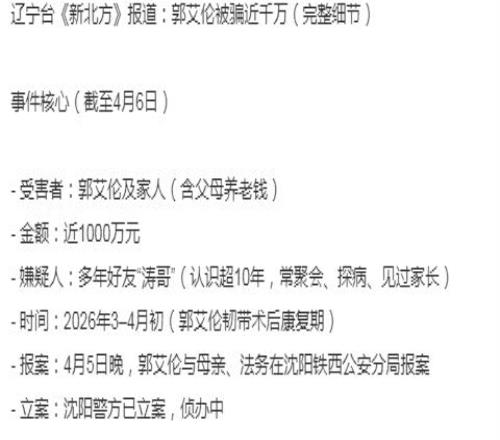 近日,國內(nèi)媒體報道近期郭艾倫與家人,被多年好友“濤哥”詐騙,損失近千萬元。