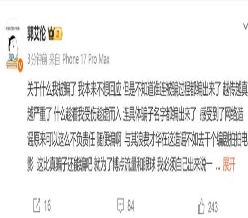 郭艾倫正式辟謠:我沒有被騙被詐騙是造謠要追究法律責(zé)任