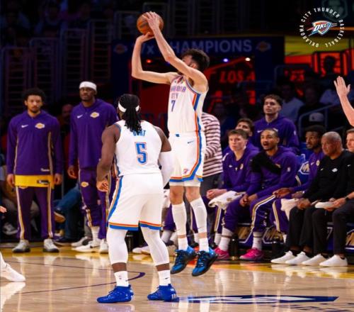 也因?yàn)槔椎峡说某糇旌巳?duì)的士氣直接沒(méi)了,第二節(jié)單節(jié)20-31崩盤(pán),雷霆這邊多點(diǎn)開(kāi)花,亞歷山大、霍姆格倫、米切爾、多爾特、喬、麥凱恩都連續(xù)得分,雷迪克更是直接DNP了范德比爾特,就連克內(nèi)克特與蒂耶羅的登場(chǎng)時(shí)間都超過(guò)了范德彪,好在八村壘繼續(xù)登場(chǎng)了,他半場(chǎng)11分。