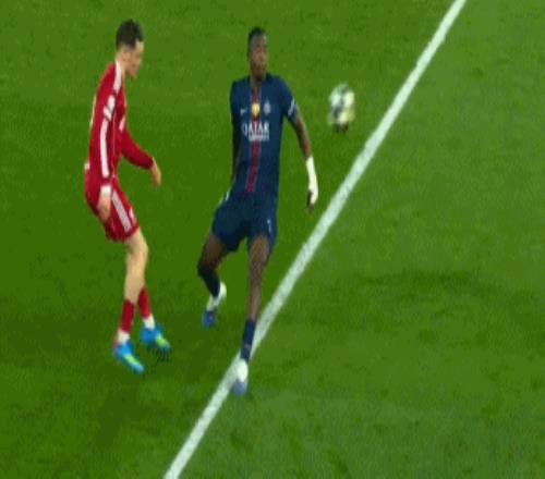 第54分鐘,克瓦拉茨赫利亞左路做球,努諾-門德斯倒三角回敲,登貝萊絕佳機會抽射打高。