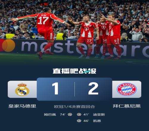 體育播報04月09日宣 歐冠1/4決賽首回合結(jié)束,巴薩0-2馬競,皇馬則1-2拜仁。