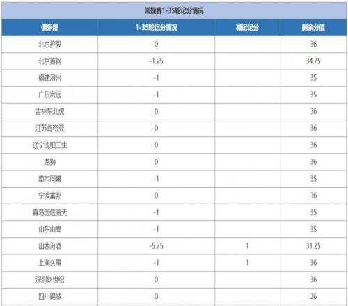 常規(guī)賽前35輪青少年友好型賽場記分:山西被扣4.75分浙江3.25分