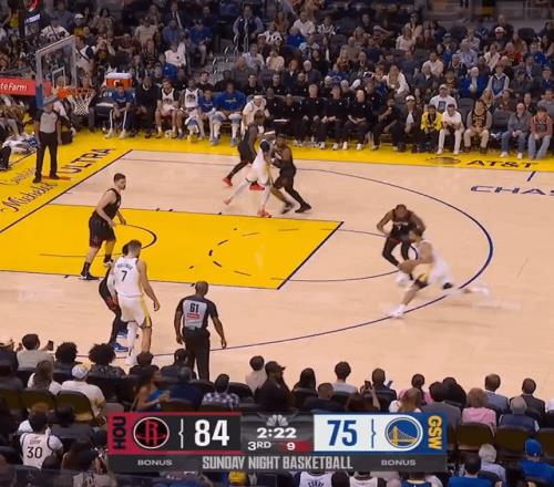 勇士打火箭這場,庫里給杜蘭特上了一堂"預(yù)判課"。第二節(jié)一次快攻,庫里持球推進(jìn),KD退防時左腳試探性前伸——他賭庫里會像往常一樣,運(yùn)兩步撤到三分線外。