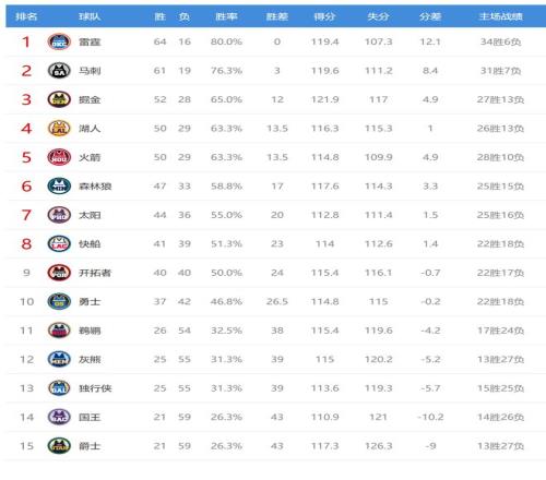 馬刺贏球后61勝19負(fù),排名西部第二,開拓者輸球后40勝40負(fù),排名西部第九,落后第八的快船1個(gè)勝場(chǎng)。