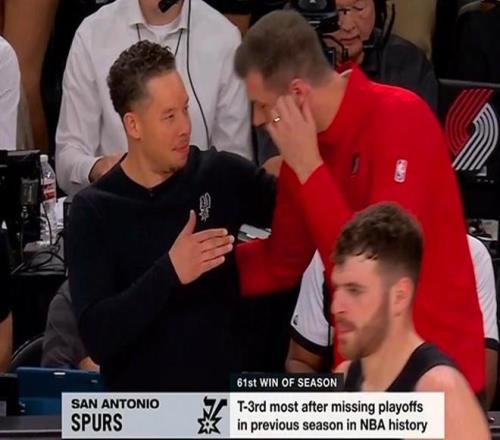 并且在常規(guī)賽還剩2場(chǎng)的情況下,馬刺隊(duì)61場(chǎng)勝利再度創(chuàng)造歷史紀(jì)錄,并列前個(gè)賽季無緣季后賽后第二年勝場(chǎng)數(shù)歷史第三多。