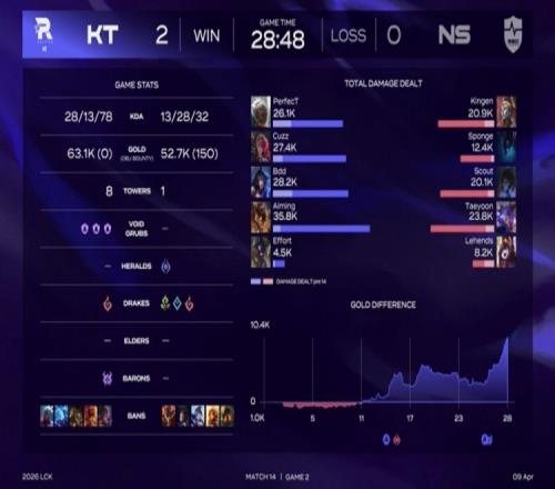 體育播報4月9日宣 2026LCK常規(guī)賽繼續(xù)進行,今日榜首大戰(zhàn)KT橫掃NS!