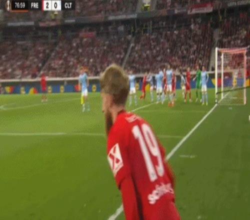 第78分鐘,貝斯特角球開到門前,金特爾頭球破門再下一城,弗賴堡3-0