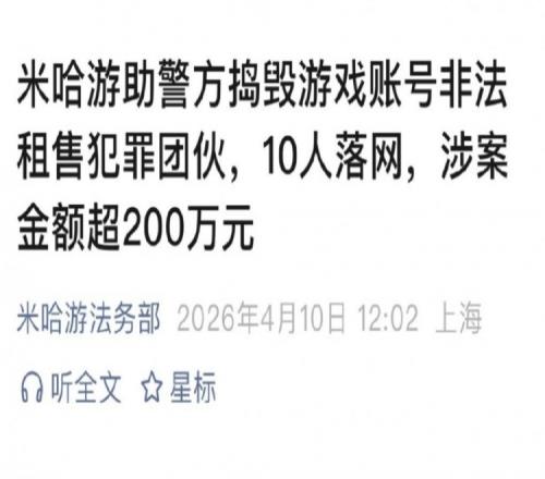 米哈游打擊黑產(chǎn):10人落網(wǎng)涉及原神絕區(qū)零等多款游戲涉案超200萬