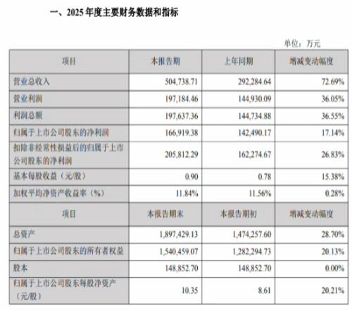 歸屬于上市公司股東的凈利潤 16.69 億元,較上年同期增長 17.14%;
