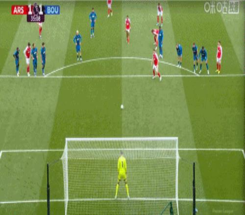 比賽第34分鐘加布角球機(jī)會(huì)造點(diǎn),哲凱賴什點(diǎn)射破門,阿森納1-1伯恩茅斯。