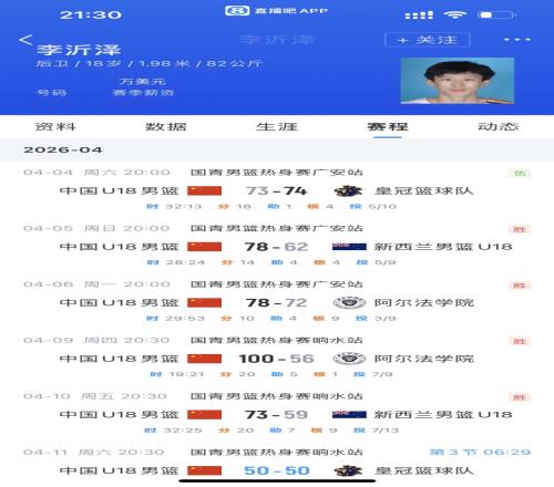 深陷改年齡風(fēng)波的國青核心李沂澤今日未進大名單此前場均16.4分