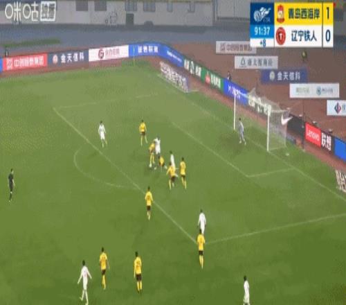 第7分鐘,遼寧鐵人后場(chǎng)出場(chǎng)失誤,阿齊茲左路倒三角傳球,劉小龍中路包抄破門(mén),西海岸主場(chǎng)1-0鐵人