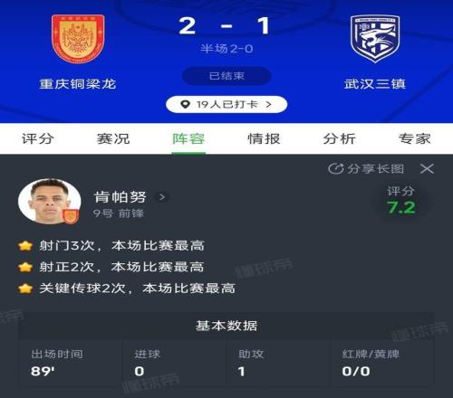 這應(yīng)該是今年中超最超值的引援了吧。重慶銅梁龍今天又贏了,而且只花了5萬歐元的新外援肯帕努貢獻(xiàn)精彩助攻,加上全場最高的2次關(guān)鍵傳球和2次射正,他的表現(xiàn)幾乎完美,本賽季他已經(jīng)貢獻(xiàn)2球1助攻,數(shù)據(jù)相當(dāng)驚艷,3個(gè)細(xì)節(jié)可以探討一下。