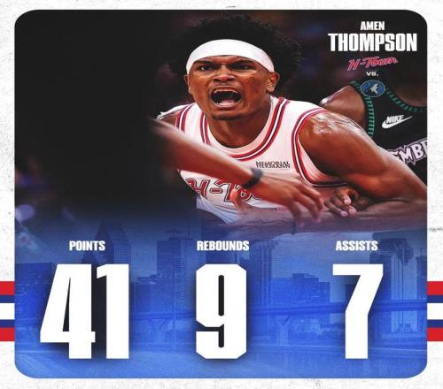 首輪無(wú)緣主場(chǎng)優(yōu)勢(shì)挺可惜,但這場(chǎng)比賽,火箭球星阿門湯普森打出了非常炸裂的表現(xiàn):全場(chǎng)出戰(zhàn)42分鐘,投籃22中17,罰球7中7,拿下41分9籃板7助攻2搶斷。