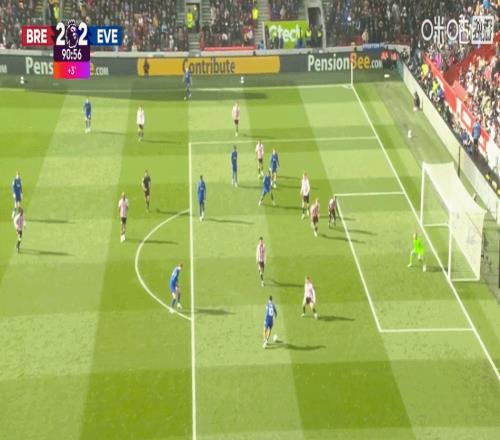 第90+1分鐘,霍爾禁區(qū)內小角度抽射扳平比分!埃弗頓2-2