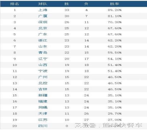 附:CBA積分榜最新排名