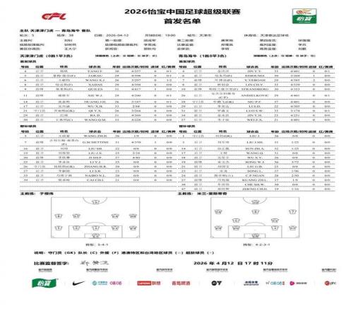 北京時(shí)間4月12日19:00,中超第5輪,天津津門虎主場迎戰(zhàn)青島海牛,本場主裁是劉釗,VAR是甘樹然。津門虎替補(bǔ)名單僅10人,雙方名單詳情如下: