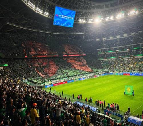 北京時(shí)間中超焦點(diǎn)戰(zhàn)北京國(guó)安vs成都蓉城的比賽在工體打響。賽前,工體展示張玉寧、法比奧巨型Tifo。