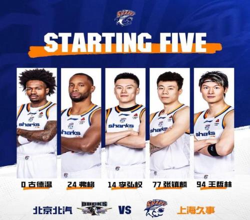 上海男籃今日首發(fā)陣容和上輪一致:古德溫、弗格、李弘權、張鎮(zhèn)麟和王哲林。