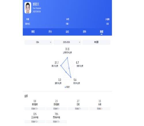 郭昊文本賽季效力于同曦男籃,31次出場后,場均21.1分5.4助攻3.3籃板,暫時是本土得分王,能力非常突出。