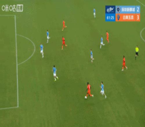 體育播報04月12日宣 中超第5輪,深圳新鵬城vs云南玉昆,比賽第62分鐘,奧斯卡橫傳,后點無人防守的約尼查面對大半個空門卻打偏了。