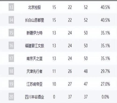 北京隊(duì)遭遇重創(chuàng),25勝13負(fù)排名第四,但已徹底失去沖擊前三的可能。他們落后廣東、深圳各1個(gè)勝場(chǎng),且后續(xù)賽程艱難,反超希望渺茫。