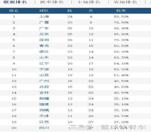 附:CBA積分榜最新排名