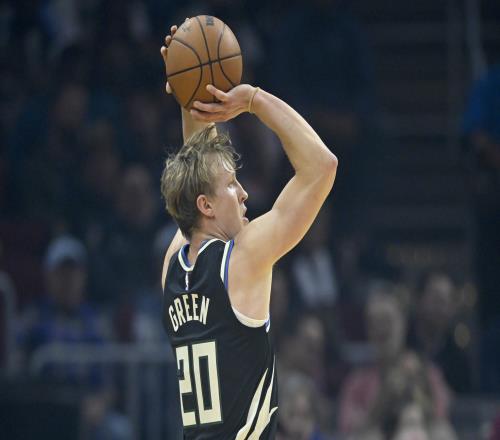 AJ·格林上半場(chǎng)打了20分15秒,10投7中,其中三分8中5,拿到19分2籃板1助攻1搶斷。