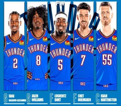 首發(fā)陣容方面,理論上雷霆排出的最強(qiáng)首發(fā)陣容為亞歷山大、杰倫-威廉姆斯、多爾特、切特-霍姆格倫、哈滕,這套首發(fā)總計出場11次,球隊?wèi)?zhàn)績6勝5負(fù).