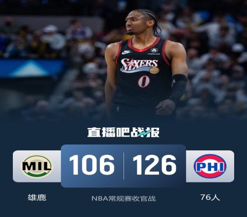 76人第三節(jié)一波流輕取雄鹿馬克西21分埃奇庫姆9+7+11