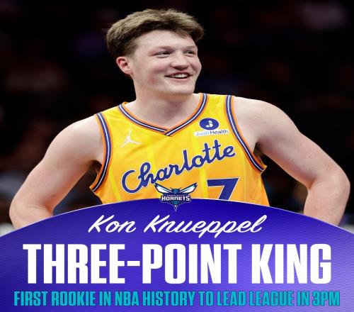 本場比賽,克尼佩爾投進3記三分,個人賽季三分命中數(shù)來到273記,高居聯(lián)盟第一,成為NBA史上首位奪得聯(lián)盟賽季三分王的新秀球員。